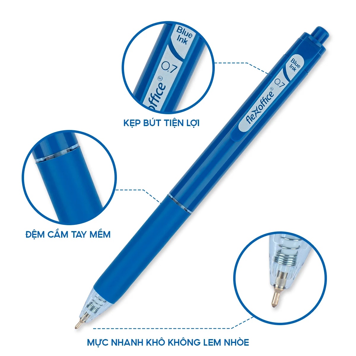 Bút được thiết kế ấn tượng, hiện đại, trẻ trung, màu sắc đa dạng và phong phú, thích hợp cho mọi đối tượng học sinh, sinh viên và nhân viên văn phòng. Bút dạng mực dầu, viết trơn êm, mực ra đều, liên tục.